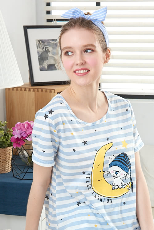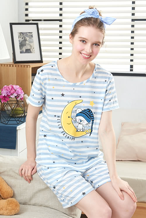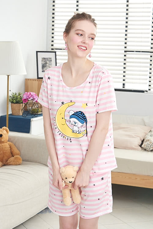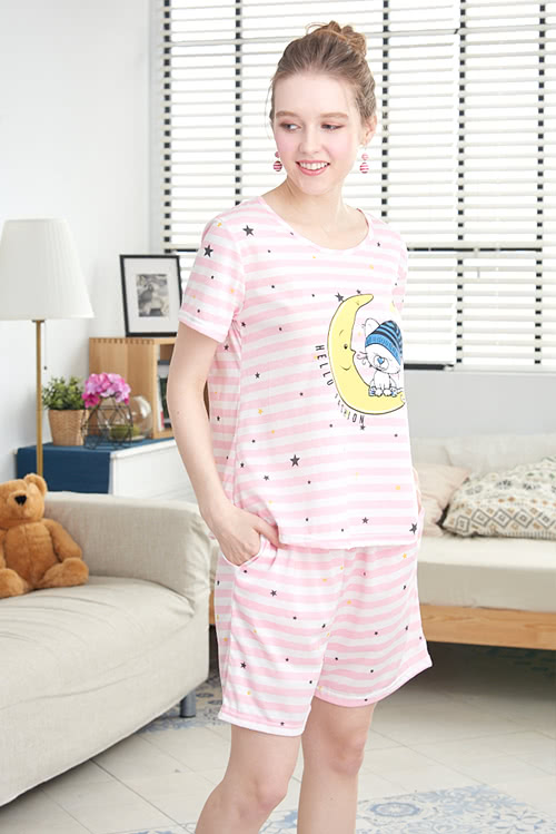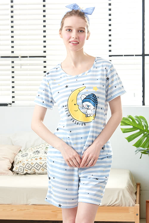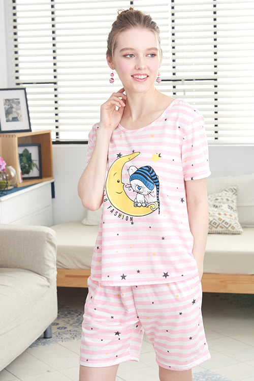最近這一款【蕾妮塔塔】貪睡小貓條紋兩件式睡衣 兩色可選(R87005)似乎是最新款式!