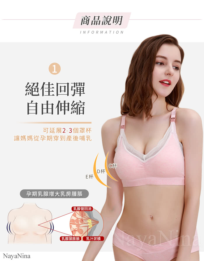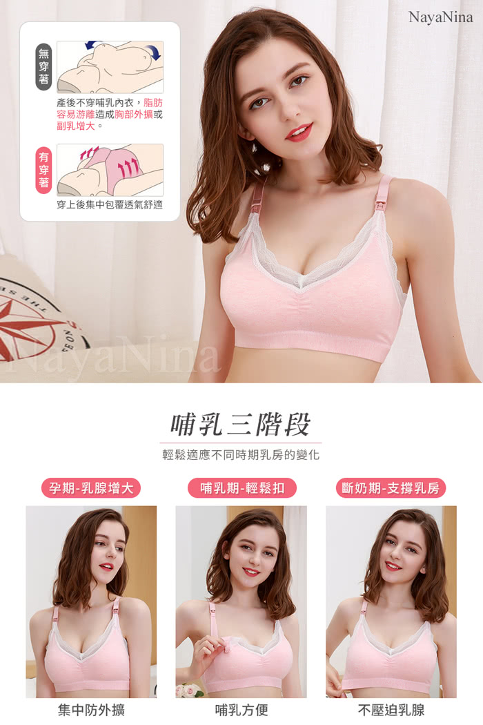 非常推薦【NAYA NINA】蕾絲舒棉無鋼圈哺乳內衣M~XL(粉色)給大家